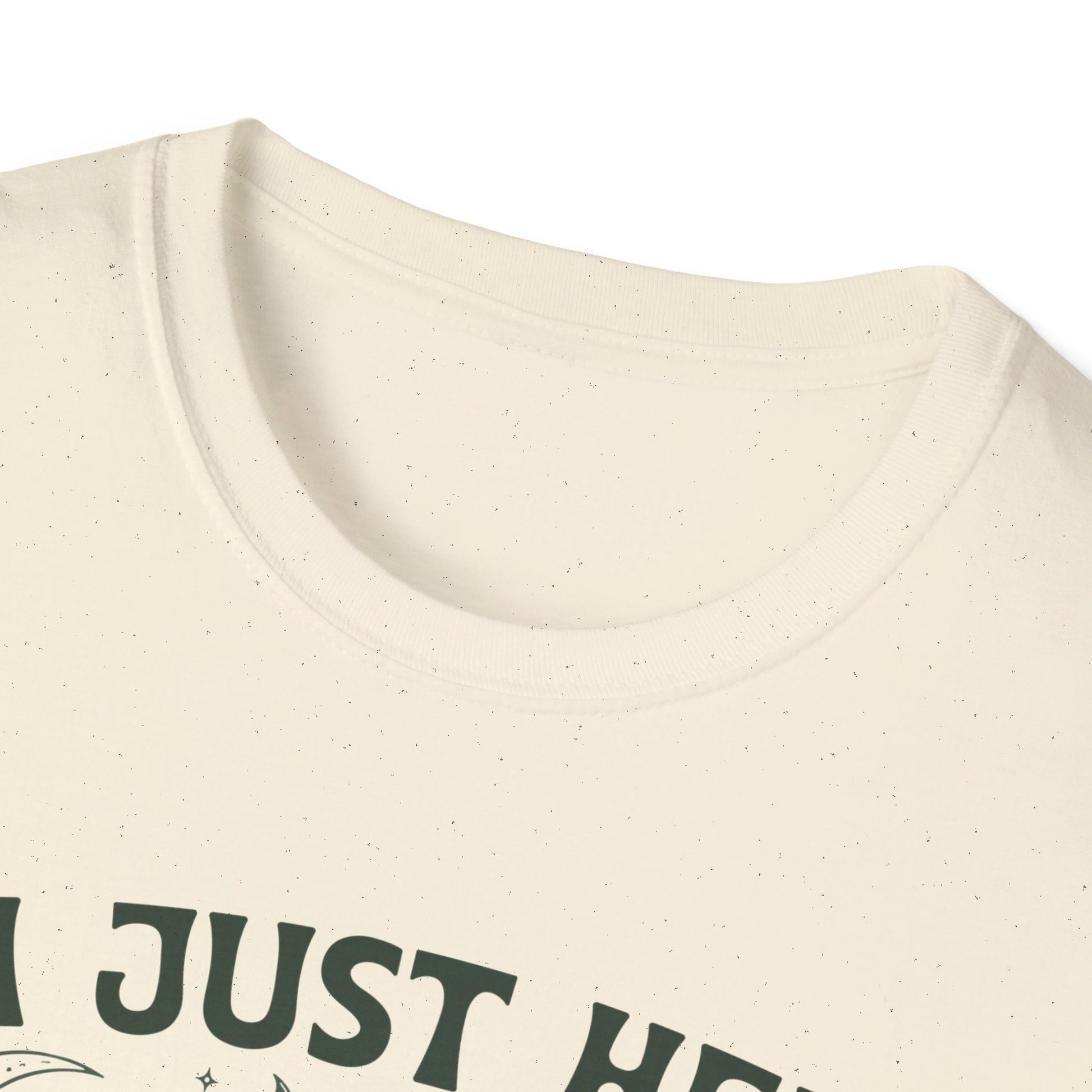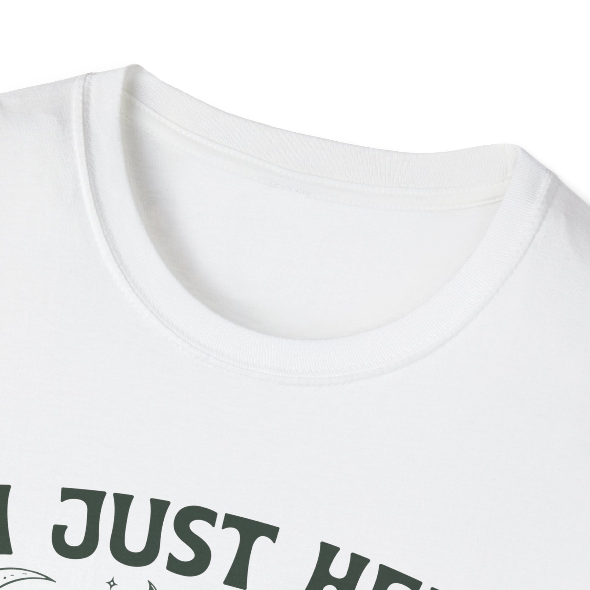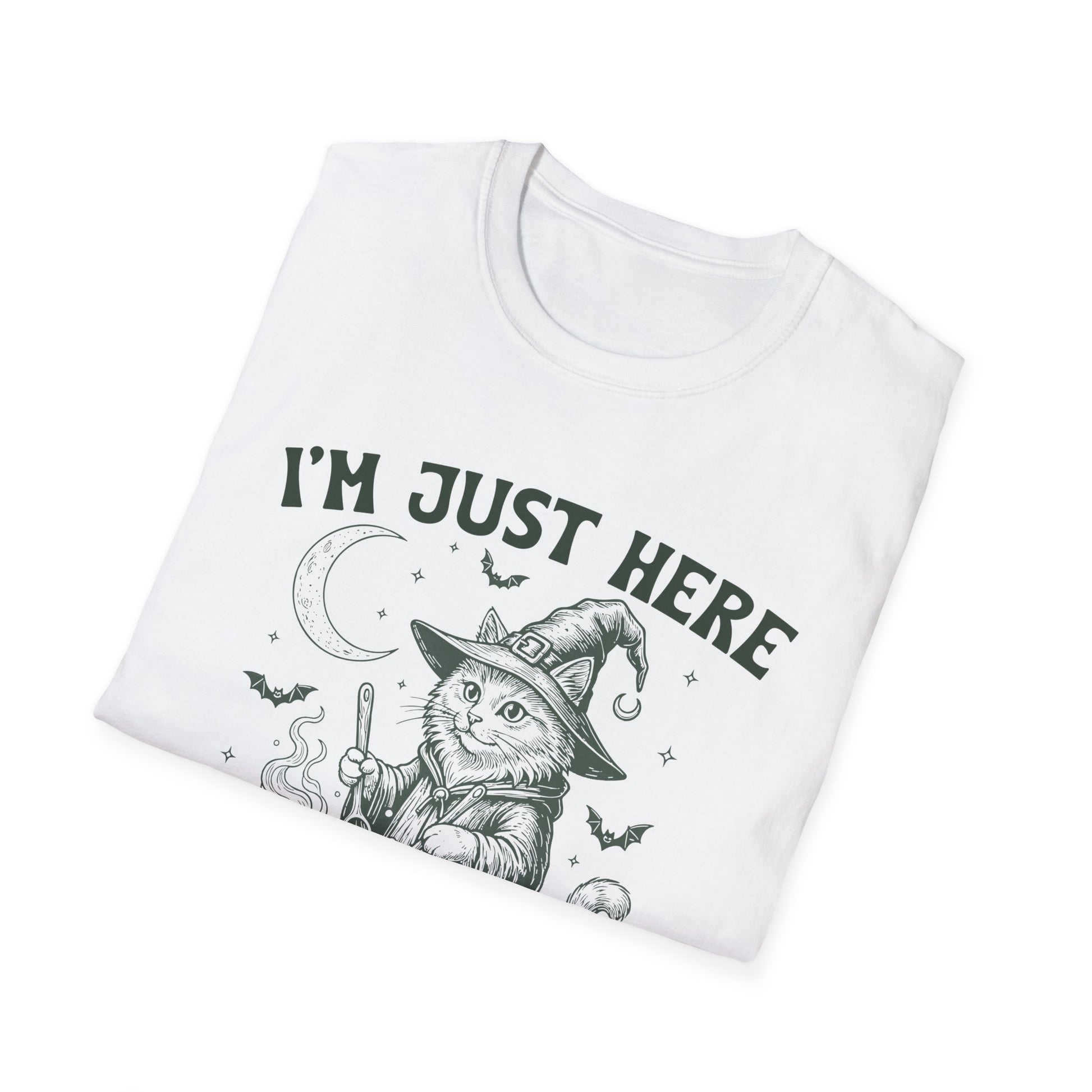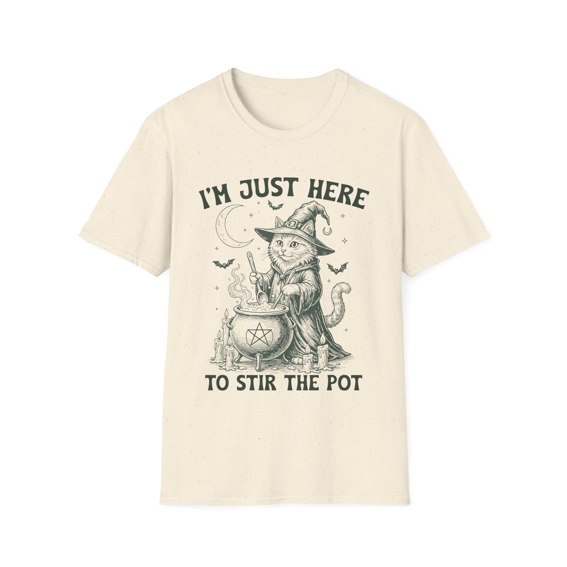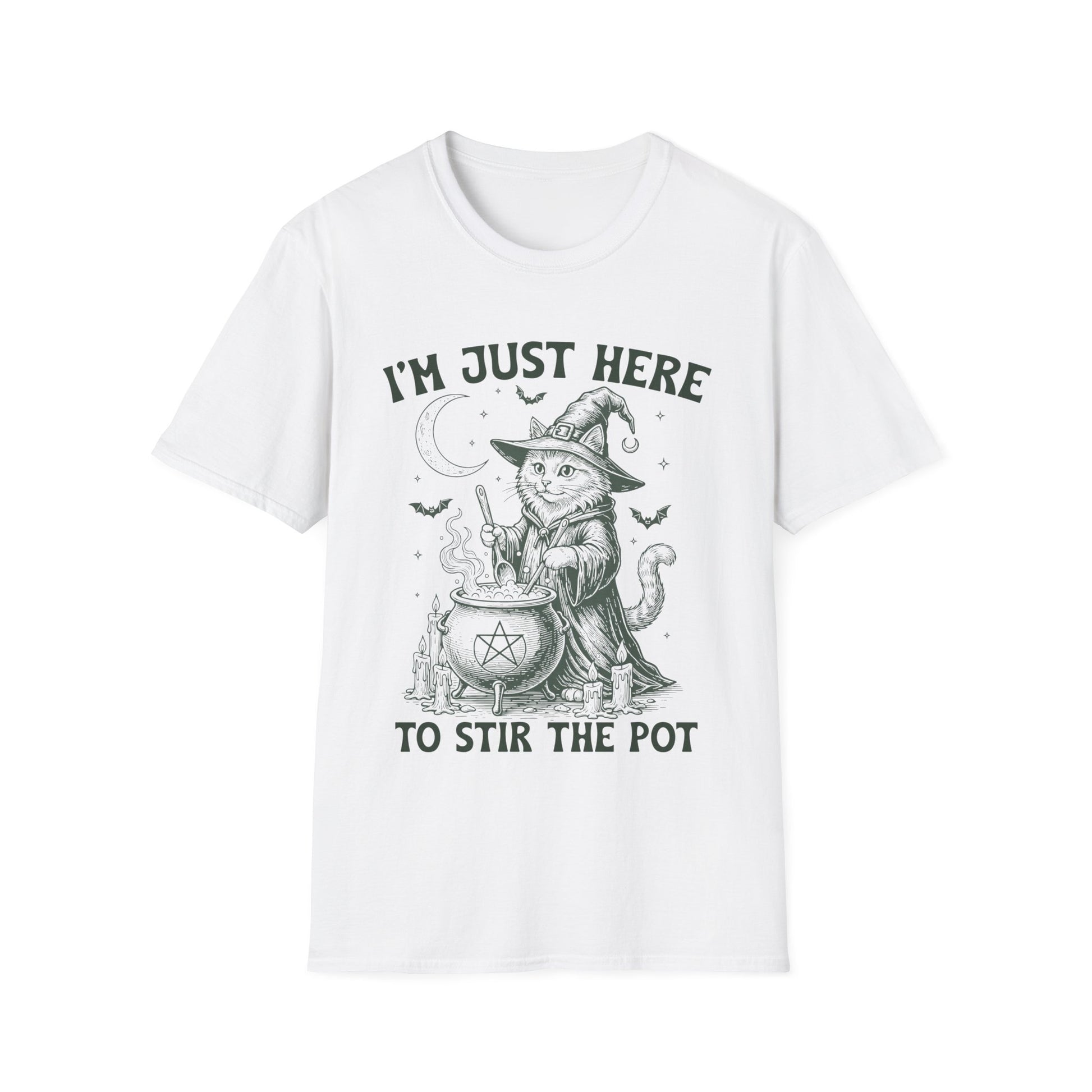 Witchy Cat T-Shirt - I'm Just Here to Stir the Pot, Halloween Shirt, Gift for Cat Lovers, Funny Graphic Tee, Unisex Casual Wear